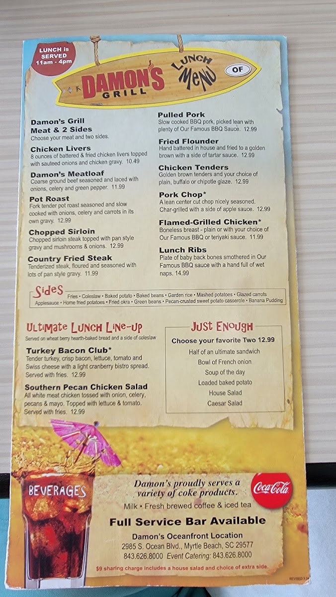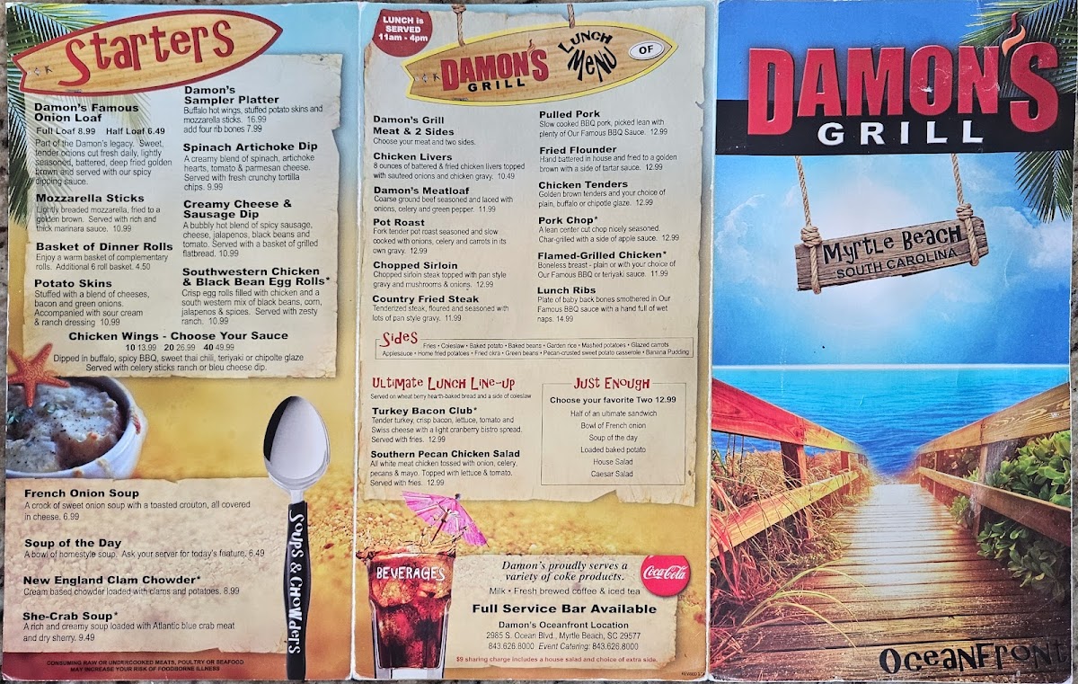 The menu fits well with Damon's relaxed, family-friendly atmosphere, offering familiar meals that invite conversation and lingering. Whether stopping by for a casual lunch, a cozy dinner with ocean views, or celebrating a special occasion, patrons will find dishes that feel both approachable and thoughtfully prepared.